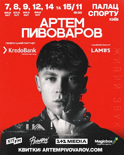 7, 8, 9, 12, 14 та 15 листопада на вас чекає унікальне шоу, що вразить наповненням і масштабом, якісна музика та неповторна атмосфера. Кожен глядач зможе відчути нестримну енергію Pivovarov Team, зарядитися позитивними емоціями та насолодитися улюбленими піснями в супроводі оркестру, зокрема з нового альбому «Твої вірші, мої ноти PT.2″. На концертах ви почуєте наживо «Барабан», «Дежавю», «Міраж», «Думи», «Маніфест», «Там у тополі» та інші хіти.
